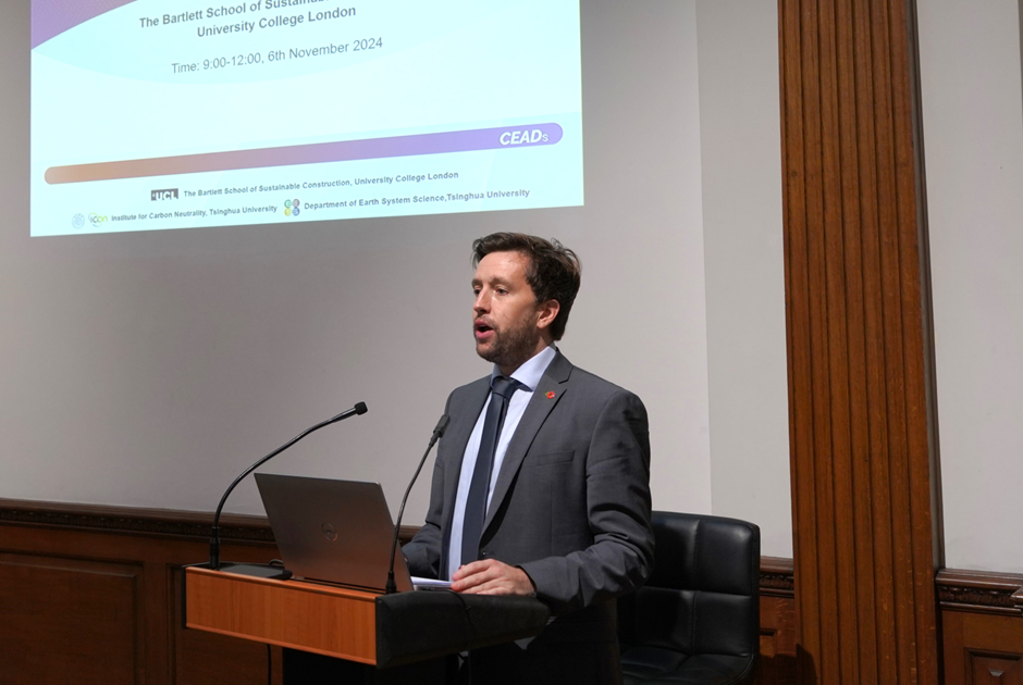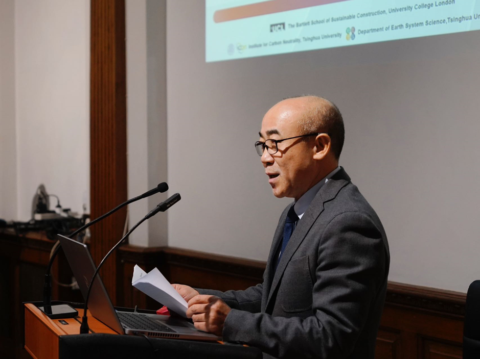 气候变化与碳中和领域中英科研创新合作研讨会由伦敦大学学院巴特莱特可持续建筑学院主办,清华大学碳中和研究院、清华大学地球系统科学系协办。清华大学副校长曾嵘,伦敦大学学院副校长马克·马斯林(Mark Maslin),中国驻英国大使馆科技公参丁明勤,英国驻华大使馆英国研究与创新署主任丹尼尔·布鲁克(Daniel Brook),伦敦大学学院巴特莱特可持续建设学院院长帕丽提·帕里克(Priti Parikh),清华大学碳中和研究院副院长王哲、关大博、俞乐,清华大学碳中和研究院院长助理鲁玺等嘉宾到场参会,共同就中英碳中和科技合作的新篇章展开了广泛交流与前瞻思考。