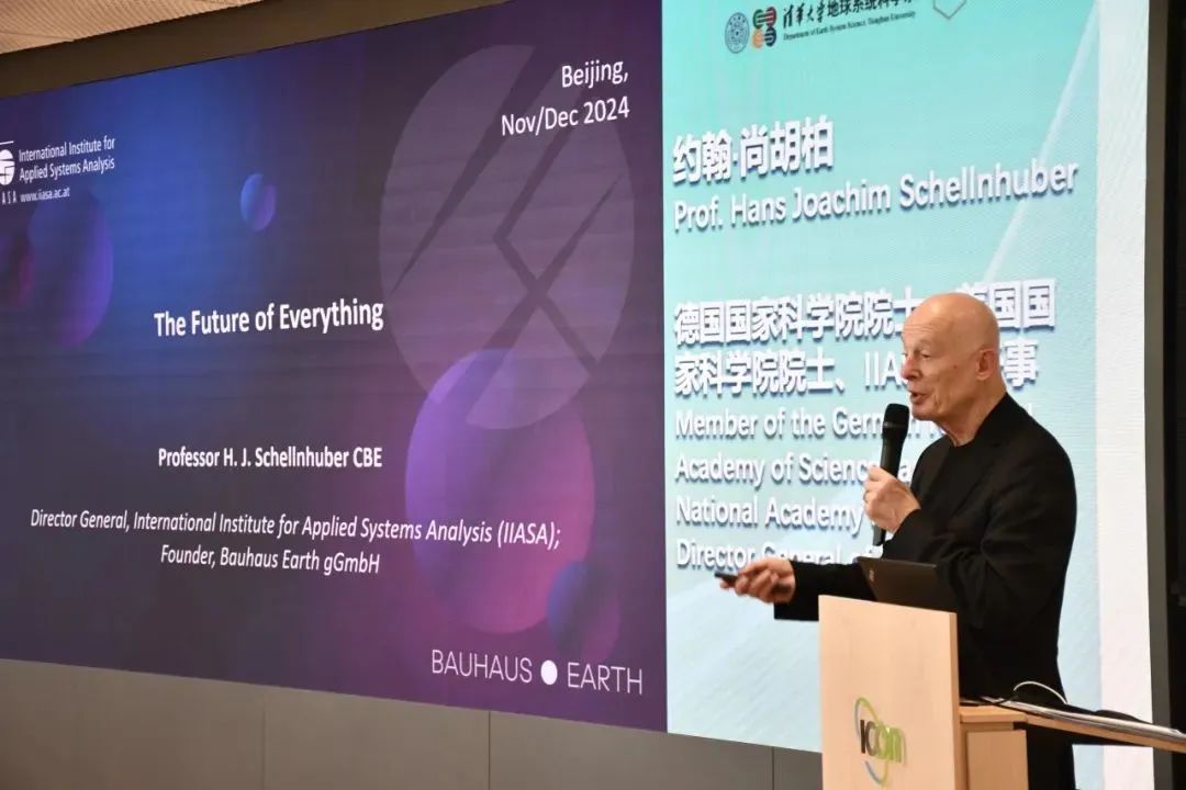 在专题研讨环节,德国国家科学院院士、美国国家科学院院士、IIASA总干事约翰·尚胡柏(Hans Joachim Schellnhuber)讨论了减少碳排放以维持环境平衡的重要性,并强调如果我们要长期生存下去,我们的文明就必须实现碳中和。他还强调了人工智能与可持续发展结合的重要意义,要充分利用超级计算机和机器学习进行预测。