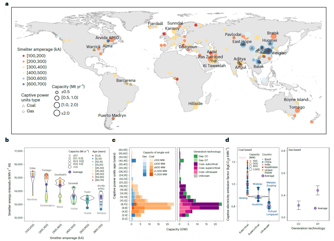 针对这一问题,清华大学碳中和研究院副院长、地球系统科学系关大博教授课题组基于全球原铝生产冶炼厂的最新调查数据,开发了自下而上的全球铝业温室气体排放清单(CEADs-AGE),从设备层面识别了全球电解铝冶炼设备的技术配置及其用电来源,并据此为各冶炼厂量身定制减排策略。相关研究成果发表于《自然-气候变化》(Nature Climate Change)。